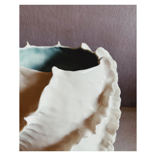 „Ich lasse mich auf Ton und Porzellan ein, arbeite mit ihnen und nicht gegen sie, halte inne, gebe den Materialien Zeit, gebe auch mir Zeit, bevor ich wieder weitermache. Dadurch entsteht ein ganz eigener Flow, es fühlt sich an wie das Plätschern eines Baches“
